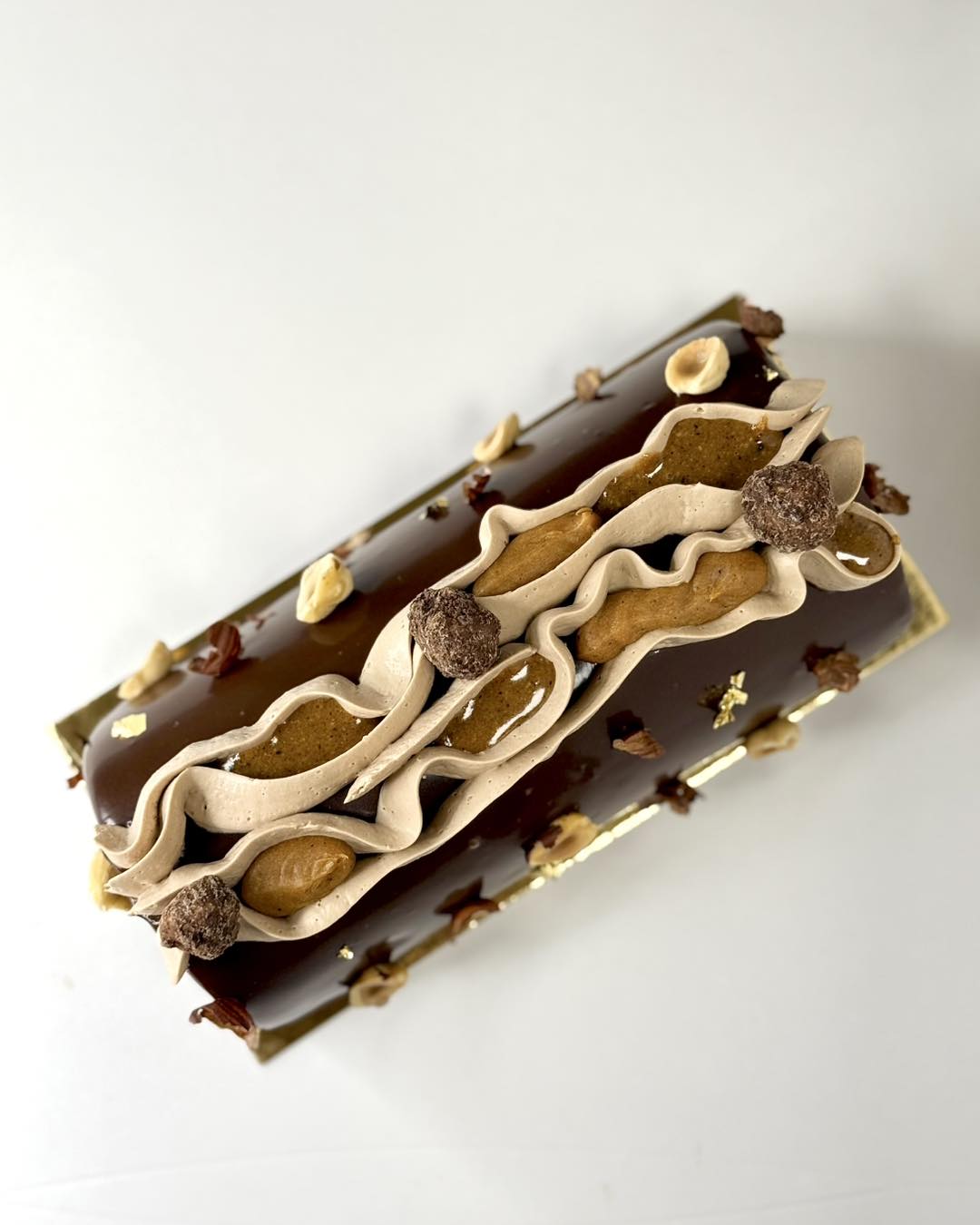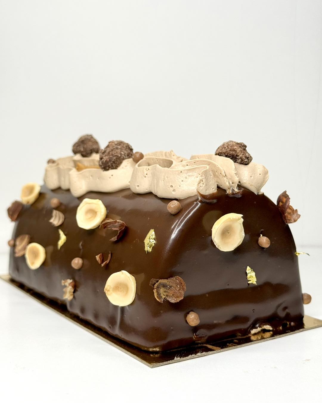 Notre bûche chocolat noisette revisite un grand classique avec finesse et modernité. Pensée pour les amateurs de chocolat, elle mêle onctuosité, croustillant et profondeur aromatique pour offrir un dessert de fête riche et parfaitement équilibré.