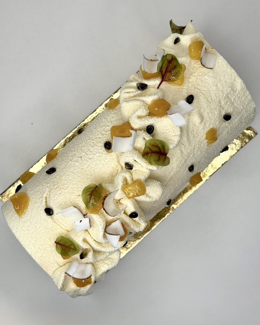 Travaillée autour de textures délicates et de saveurs lumineuses, cette bûche offre une dégustation aérienne, idéale pour conclure un repas festif avec élégance.