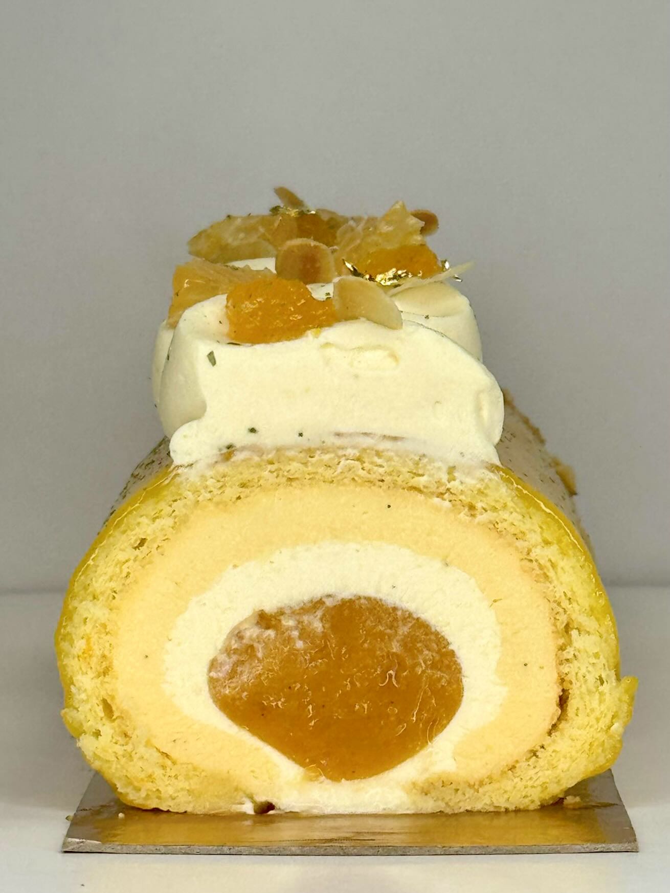 Découvrez notre bûche roulée aux agrumes, une création pâtissière artisanale pensée pour offrir un dessert de fête frais, léger et plein de caractère. Élaborée dans notre atelier près d’Alès, cette bûche de Noël met en valeur des agrumes sélectionnés avec soin, travaillés pour révéler toute leur intensité.