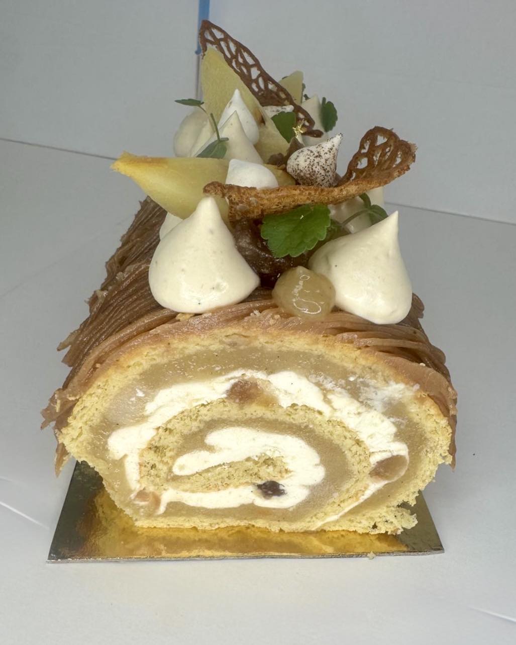 La bûche roulée marron est une création chaleureuse et réconfortante, inspirée des parfums emblématiques de l’hiver. Pensée pour les amateurs de marron, elle associe des textures fondantes à des notes fruitées et épicées, pour un dessert de fête à la fois traditionnel et raffiné.